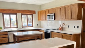 At the heart of the home, you’ll find an inviting open-concept living, dining, and kitchen area, highlighted by soaring ceilings with exposed wooden beams, abundant natural light, and seamless flow throughout. The kitchen is fully equipped with modern appliances, generous counter space, and a large island perfect for entertaining or everyday living.
