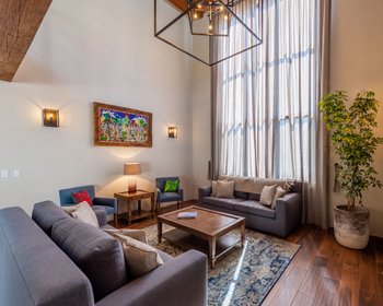The outdoor spaces are equally breathtaking, with a terrace off the TV area complete with a 12-seat dining table and bar table, grill and wet bar. The San Miguel sunsets can be enjoyed from rooftop terrace that has a fire pit and incredible views to Centro.