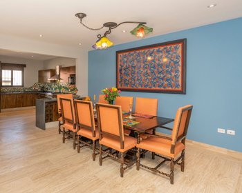 Casa Bonita has a great feel, with custom design including LR and DR chandeliers, sconces, and kitchen backsplash mosaic.