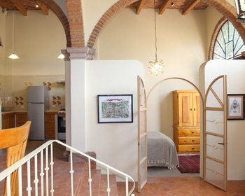 The small kitchen is perfect for preparing your favorite meals in a practical and efficient way, making the most of the space without sacrificing comfort.