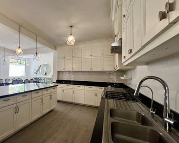 The kitchen is spacious, equipped with a dishwasher, oven, and granite countertops, and opens to a large dining areaand a bright living room with garden views. The private garden is large and includes a terrace, perfect for outdoor gatherings or relaxing.