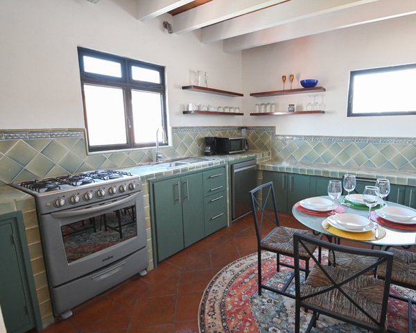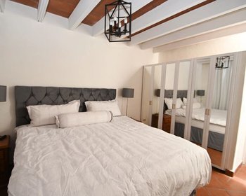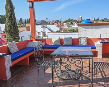 The Casa Amani residences in La Aldea, one of San Miguel’s most prestigious neighborhoods, offer an unapparelled location, only blocks from San Miguel’s main square, Park Juarez, and the Rosewood Hotel. The quiet and private community provides plenty of parking for you and your guests, with an abundance of shops and restaurants nearby on Ancha de San Antonio, one of San Miguel’s most popular shopping streets. Set among La Aldea’s tree lined streets, beautiful homes, and across from a serene private park, this third floor two-bedroom, one bathroom, residence offers spectacular views of San Miguel and the center city from your own private seven hundred square foot rooftop. A covered roof deck and built in seating provide an elegant setting for solitude or entertaining. The entire residence has been completely renovated with a beautiful kitchen and bathroom, a tastefully furnished living room, a tranquil master bedroom and a comfortable second bedroom or study. The residences are professionally managed and include all utilities, storage lockers, whole house water filtration, laundry room, high-speed internet, and weekly maid service. Each residence is fully equipped with everything from wine openers to linens and kitchenware. $1,800 USD/Month ($33,000 pesos) Long Term Lease