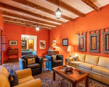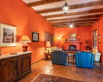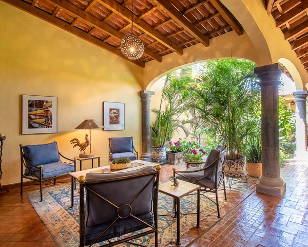Step into timeless elegance in this beautifully maintained hacienda-style residence, ideally located just one block from Calle Cinco de Mayo and Calle Ancha San Antonio on a quiet unassuming one-way street on the edge of Guadiana neighborhood. And, just around the corner to restaurants, galleries, and shopping and a 15-minute walk to the Jardin. From the moment you enter, the home welcomes you with its graceful barrel boveda ceiling, soft natural light, and the artistry of traditional Mexican design. The elegantly appointed living room features a handsome cozy fireplace and tall glass doors that open onto a sunlit logia — a covered outdoor gallery lined with stately stone columns overlooking a lush, mature garden filled with color and serenity. The spacious dining room, with its beamed ceiling, provides a dramatic yet inviting setting for entertaining and family gatherings. There is a lovely, covered patio off of the dining room overlooking the mature garden. The kitchen offers warmth and functionality with its abundance of custom wood cabinetry, granite countertops, and generous workspace — perfect for those who love to cook and entertain in style. The primary suite is a private retreat — spacious, bright, and beautifully appointed — with a fireplace, large ensuite bath, and private patio that opens to a small garden. The additional two bedrooms are equally comfortable and versatile; one is currently used as a den or library, ideal for quiet reading or work-from-home space. Throughout the home, metal-and-glass doors create a seamless flow between interior and exterior spaces, filling each room with natural light and garden views. A rooftop terrace provides an ideal setting for morning coffee or sunset cocktails beneath San Miguel’s ever-changing sky. With two fireplaces, garage parking, and a location just moments from City Market, local cafés, restaurants, and the historic Centro, this home offers the rare blend of traditional charm, refined comfort, and everyday convenience. A home that radiates warmth, character, and elegance — the essence of authentic San Miguel living. Fully furnished. One car garage.