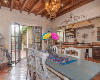 This gorgeous property is being offered turnkey except for two special lamps. So, all you need to bring are some clothes and a toothbrush and you will be ready to enjoy this lovely home. The home is one of six properties in a private gated enclave of homes each with off street parking. There are three bedrooms and three and a half baths with one bedroom with an ensuite full bath on the first floor. Also on the first floor, just off the open floor plan with a kitchen, dining, and living room is a large patio with a summer kitchen that is really convenient for outdoor dining and entertaining. The second floor has the other two bedrooms both with ensuite full baths plus a cozy reading room. The rooftop has a large, covered terrace with panoramic views of the town. Also on the rooftop are solar panels that keep the cost of electricity at the minimum even when running the mini split upstairs. The home has whole house water filtration, water softener, and reverse osmosis filtration in the kitchen. The little enclave of homes is maintained very nicely, and the HOA annual fee is only $550 usd. This is worth a look, so please contact me for a showing