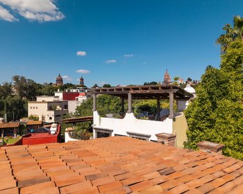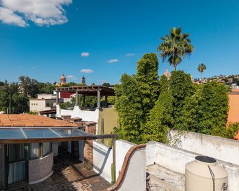 Located in Centro in the charming gated community of La Aldea, this property offers the opportunity to have a private home or rental in the heart of San Miguel. The property is an excellent opportunity for a renovation project. On the first level, the property features a kitchen, living room, dining room, and a space that could be a den, office, art studio, or yoga room. Two bedrooms complete this level. The second level offers independent access and has six furnished studio apartments, each has a small kitchen and a full bathroom. These units are perfect for rental. There is an inviting garden at the center of the property. This unique investment and restoration opportunity will not last long on the market! Make an appointment to see it today!