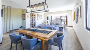 The property offers two spacious bedrooms, including a serene primary suite with a king-size bed and ensuite bath, and a secondary bedroom with two singles—perfect for guests or family. A dedicated workspace and high-speed internet make it easy to work remotely from paradise.