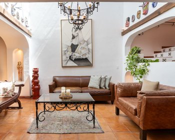 Welcome to Casa Mona Lisa, a stunning Spanish Colonial residence in the desirable Centro neighborhood of San Miguel de Allende. This 2 bedroom, 2 1/2 bath home, plus an attached casita with its own private entrance, blends timeless Mexican craftsmanship with modern comfort. The main floor is bathed in natural light, showcasing iconic boveda ceilings, hand-painted tiles, and architectural details that celebrate authentic Mexican design. The open-concept living, dining, and kitchen areas flow effortlessly, while the spacious kitchen—complete with stainless steel appliances, artisan tiles, and abundant storage—invites culinary creativity, family gatherings, and entertaining alike. The primary suite, located on this level, includes a cozy fireplace, ensuite bath, and walk-in closet — offering convenient single-level living. Upstairs, a generous second bedroom with ensuite bath ensures privacy and comfort. Step out to the second-floor patio and enjoy your morning coffee or an evening glass of wine. The attached casita, provides endless possibilities—perfect as a guest retreat, creative studio, or source of rental income. The home’s rooftop terrace is a charming spot for relaxation where you can take in sweeping city views and magical sunsets. Located minutes from the heart of San Miguel, with cafés, artisan shops, and fine-dining nearby, Casa Mona Lisa delivers an exceptional lifestyle in this UNESCO World Heritage city.