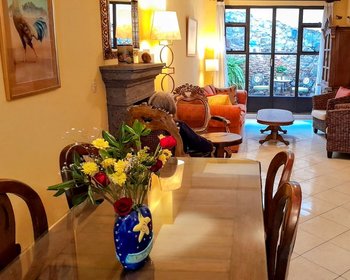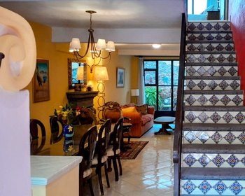 CASA NANA Warm, stylish, and filled with natural light, Casa Nana is a charming three-story home ideally located in the highly desirable North Side of Colonia San Antonio—just steps from Orizaba Street and a short walk to Stirling Dickinson and the lively San Juan de Dios Market. Offering exceptional walkability, artisan craftsmanship, and well-designed indoor–outdoor living, this home perfectly captures the San Miguel lifestyle. Positioned on a 56 m² lot with 149 m² of construction, the home unfolds across three thoughtfully planned levels, each with inviting spaces, great airflow, and custom finishes that add character and comfort. First Floor The main level features an open living, dining, and kitchen layout with handcrafted custom carpentry by local artisans. A Cantera stone fireplace anchors the living room, providing warmth on cool days. The kitchen includes a reverse osmosis system, two pantries, and excellent storage. A small rear patio allows natural ventilation and keeps the home cool during warmer months. Second Floor The second level includes the primary bedroom, overlooking the quiet back patio and offering its own private bathroom, generous storage, and beautiful natural light. A second guest bedroom faces the street and features two Juliet balconies. A hallway full bathroom with a tub completes this floor. Third Floor The top level offers a lovely terrace with Parroquia views, ideal for morning coffee or evening entertaining. This floor also includes a cozy TV lounge, a service room with full bathroom and walk-in shower, a laundry area, and a private third bedroom—perfect for guests, an office, or creative space. Additional Features Whole-house water purification system Ceiling fans and excellent airflow All systems functioning perfectly Sold fully furnished, except for a few personal art pieces Comfortable beds and well-designed living areas Strong investment potential for seasonal or long-term rentals Lovingly maintained as a private home for more than a decade Casa Nana is warm, inviting, and move-in ready—a rare find in one of San Miguel’s most loved and walkable neighborhoods.