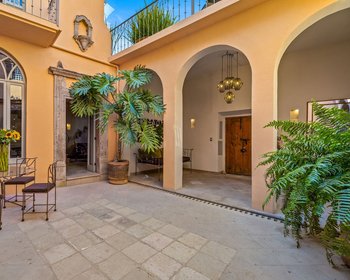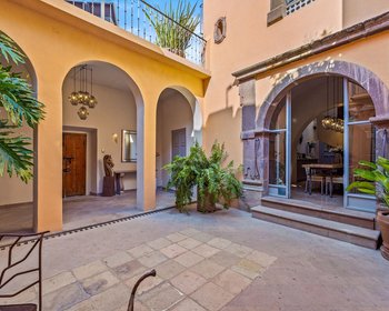Discover timeless elegance in this beautifully updated historic home, conveniently located in the heart of Centro Histórico-the vibrant UNESCO World Heritage zone of San Miguel de Allende. Blending classic colonial character with refined modern comfort, this residence offers an atmosphere of understated luxury and effortless living. The home is the inspired result of a collaboration between the owner and Miguel Arregui, a renowned architect, artist, jeweler, furniture designer, and founder of Tao Studio, bringing together artful vision and thoughtful design. Their combined aesthetic is felt in every space-balanced, serene, and infused with understated sophistication. The moment you step through the front door, you're greeted by a warm, uplifting energy that flows throughout the home. Thoughtful updates preserve its rich architectural heritage while enhancing light, comfort, and livability. With five spacious en-suite bedrooms, each designed for privacy and relaxation, the property is perfectly suited for hosting family, friends, or guests. Indoor-outdoor living defines the experience here. A charming outdoor living room with a fireplace invites you to gather year-round, whether for morning coffee or evening conversations under the stars. On the expansive second-floor terrace, enjoy sweeping sunset views that paint the skyline in unforgettable colors-an ideal setting for entertaining or quiet reflection. This is a rare opportunity to own a home that embodies the spirit of San Miguel: historic, soulful, gracefully updated, and wonderfully livable. Steps from celebrated restaurants, galleries, and the iconic Parroquia, yet nestled in peaceful elegance, this residence delivers the best of Centro living. A truly special home where comfort, charm, artistry, and heritage come beautifully together.