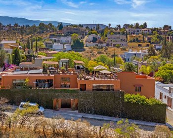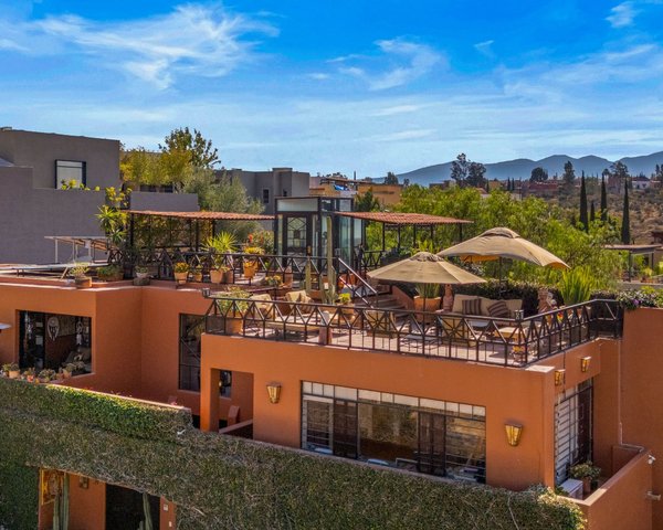 Discover a striking Mexican-modern residence where clean lines, artisanal craftsmanship, and warm design elements come together beautifully. Originally designed and built by the architect as his personal home, it stands as a true homage to his vision and to the artistic spirit of his wife. Positioned directly across from El Charco del Ingenio, this exceptional property offers privacy, nature, and architectural intention in perfect harmony. A dramatic set of double-story metal doors, framed by two artisanal fountains, creates a memorable entrance and sets the tone for the thoughtful design found throughout. Created with a reverse floor plan, the main living areas and the studio wing are situated on the upper level to maximize natural light and capture sweeping ecological-reserve views. The dedicated wing room, currently used as a studio, provides an inspiring work or creative space. On the first floor, the cool and tranquil private quarters include the primary bedroom and a guest bedroom, offering the comfort of single-level living. A versatile flex room can easily become a third bedroom, office, gym, or media room. The home includes 3 beautifully finished bathrooms with marble or handcrafted artisanal tile, five fireplaces, two spacious walk-in closets, and abundant storage. A well-maintained elevator provides effortless access between levels, making the home especially convenient for anyone with mobility needs. Throughout the house, custom lighting and mesquite furnishings crafted by local artisans create a cohesive and refined environment, complemented by solar electric panels for sustainable, energy-efficient living. Outdoors, lush landscaping and mature plantings offer serenity across multiple terraces, all securely enclosed and fully dog-friendly. A stunning lap-style plunge pool provides a refreshing space for exercise, relaxation, and sunlit afternoons. A major highlight is the independent casita, offering tremendous flexibility and income potential. The casita features three bedrooms and two full bathrooms, ideal for hosting guests, multigenerational living, or generating passive rental income. A rare blend of Mexican-modern design, personal architectural heritage, accessibility, and exceptional functionality this home truly has soul.