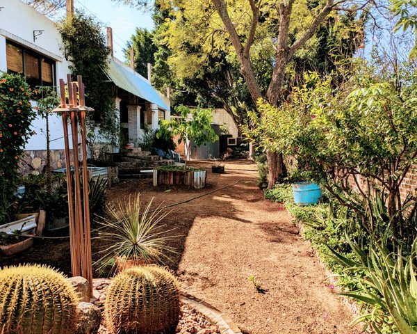 The garden area currently has vegetables, herbs and even medicinal herbs which are watered by a combination of grey water recycling and rainwater catchment tanks.