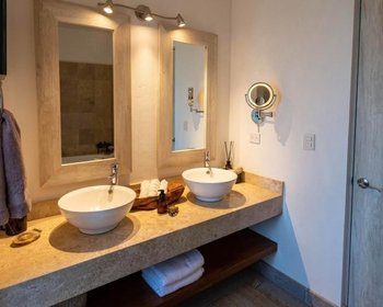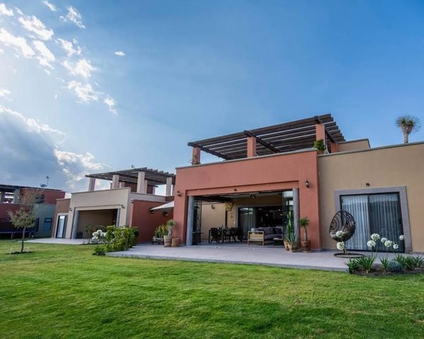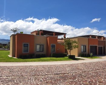 Beautiful single-story home with 3 bedrooms in a private community in San Miguel de Allende Located just 10 minutes from downtown San Miguel de Allende and only 500 meters from the Charco del Ingenio Ecological Reserve. Convenience stores within walking distance. This stunning one-level residence features a private jacuzzi, a soaking tub in the primary bedroom, and a spacious covered terrace with fireplace preparation and an entertainment area. An expansive rooftop offers a pergola, grill, sink, and half bathroom, along with spectacular views of the “Los Picachos” mountains and the ecological reserve. Lot size: 545 m² Construction: 277 m² Layout and features: 3 bedrooms, all with en-suite bathrooms and floor-to-ceiling closets Primary bedroom with soaking tub and double vanity 4 full bathrooms with tempered glass shower enclosures 2 half bathrooms Service quarters with full bathroom Covered garage with electric gate Owner upgrades and custom details: Motorized blinds on the terrace Fireplace preparation Full-opening Spanish-style sliding doors Kitchen skylight to maximize natural light Custom niche in guest bathroom for enhanced spaciousness Wood paneling in hallway Marble kitchen island countertop Mosquito screens on all windows, including doors to the pool and terrace Built-in ceiling speakers providing surround sound in living room, dining area, and terrace Prime location within the community: Directly in front of the main swimming pool Clubhouse located just across the street Premium amenities: Gym Padel tennis court Children’s area Steam room Business center Expansive green areas An exclusive development of only 94 homes within a 5-hectare community, offering privacy, comfort, and a high-end lifestyle.
