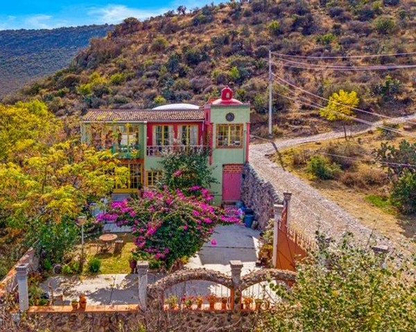Colorful country living awaits in Alcocer, just minutes from the reservoir and surrounded by open skies and nature. Set on an expansive 1,562 m² (16,813 sq ft) lot, this two-story, 3-bedroom, 4-bathroom home offers character, space, and exciting potential for the right buyer.The residence features 286 m² (3,078 sq ft) of construction and showcases traditional architectural elements such as cúpula and bóveda ceilings, adding warmth and charm throughout. Living spaces are generous and filled with natural light, while the rooftop terrace delivers beautiful mountain views, perfect for sunsets or future entertaining.Outdoors, the property truly shines with a large garden and mature bougainvillea, creating a peaceful, colorful setting ideal for family life, gardening, or outdoor gatherings. The lot is large enough to be subdivided, while still allowing for a substantial private garden—an excellent opportunity for expansion or investment.While the property needs some TLC, it offers solid bones and endless potential to become a wonderful family home close to nature, yet within easy reach of San Miguel de Allende. A rare opportunity for buyers seeking space, character, and value in a sought-after countryside location.