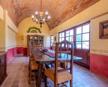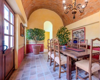 Casa Sal Si Puedes 10 is a striking modern colonial residence located within the exclusive gated community of Villa de los Frailes in San Miguel de Allende. Designed for both elegant entertaining and serene everyday living, this expansive property features 5 bedrooms, 5 full bathrooms, and 2 half baths, surrounded by lush gardens and anchored by a heated swimming pool.Authentic Mexican character shines throughout the home with arched bóveda ceilings, Talavera tile accents, wood-burning fireplaces, and abundant natural light pouring through oversized windows. The vibrant, fully equipped kitchen serves as the heart of the home, opening to gracious interior and exterior living spaces. Multiple terraces overlook the Allende Dam, offering peaceful views and spectacular sunsets.The property includes a separate guest casita, ideal for visitors, staff, or rental income, along with a walled compound with garage-door access for privacy and security. Inside the home, private hot tubs and soaking tubs provide spa-like comfort, while outdoor amenities include a grassy area perfect for pets or grounding, and a dedicated outdoor grill and entertaining area.Whether envisioned as a weekend escape or a full-time residence, Casa Sal Si Puedes 10 delivers space, privacy, and timeless Mexican elegance in one of San Miguel’s most desirable residential communities.