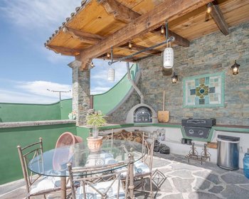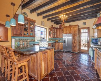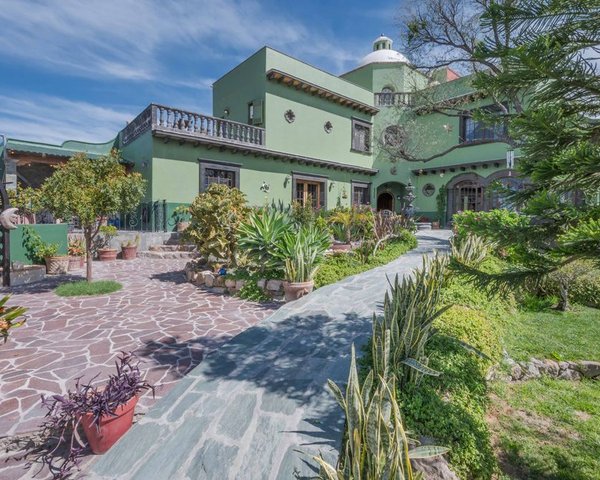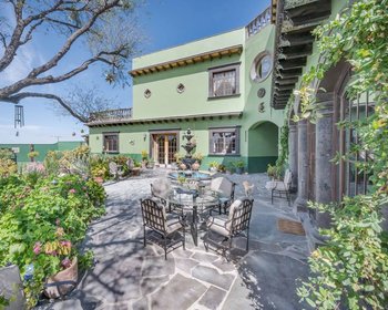 Welcome to Casa Cósmica, a soulful sanctuary designed for those who feel deeply connected to light, sky, and the quiet magic of San Miguel. Thoughtfully crafted and solidly built, this exceptional residence blends artistry, natural materials, and enduring construction with expansive views in every direction.Situated on a 720 m² lot with 349 m² of construction, the home is built of traditional adobe with 16 inch thick walls, offering remarkable insulation, quiet interiors, and natural temperature stability throughout the year. A sense of permanence and grounding is immediately felt.One of the most defining features of Casa Cósmica is its panoramic 360° views. From the foothills of the surrounding mountains to the iconic Parroquia skyline, from southern vistas where holiday fireworks can be enjoyed in the distance, to the dark canyon to the north with no neighbors behind, the horizon unfolds in every direction. Sunrises and the rising moon glow to the east, while a round window above the entrance aligns with the winter solstice sunset.Inside, rich parota wood doors, beams, and custom cabinetry bring warmth and character throughout. Multiple fireplaces create inviting gathering spaces, while handcrafted finishes and natural textures add depth and authenticity.The first floor is designed for gathering and everyday living, offering a spacious kitchen, dining area, living room, library, and a full bath for guests.The kitchen is both functional and inviting, featuring copper accents, modern appliances that are nearly new, generous workspaces, and seamless flow for entertaining. All appliances are included in the sale. A curated furniture package is also available, offering a perfect opportunity for those seeking an effortless transition into the home.Upstairs, the second floor is dedicated to rest and privacy. Two spacious in suite bedrooms each open onto a private terraza with open views. The primary bath is a retreat, highlighted by a sculptural copper soaking tub.The third level offers a flexible studio, meditation, or art space, accompanied by two expansive terrazas that embrace the panoramic views, ideal for creative work or quiet reflection beneath the stars.Outdoors, the property unfolds as a private garden sanctuary. Mature trees, flagstone pathways, integrated garden sprinklers, and a charming wishing well creates an atmosphere of grounded beauty. An outdoor kitchen with barbecue grill and pizza oven makes alfresco dining effortless.The home is equally impressive in its infrastructure and sustainability, featuring nine solar panels measuring approximately 3 by 6 feet each, supported by three lithium ion solar batteries and connected to CFE, resulting in an average monthly electric bill of approximately 89 pesos. The water system includes a 10,000 liter cistern in the garage and a 5,000 liter cistern beneath the well with rainwater catchment. It is fully pressurized with filtration and softening, while maintaining access to municipal services. Two on demand water heaters ensure comfort, and an extensive security system with eight cameras provides peace of mind.Casa Cósmica was chosen by its current steward for the powerful sense of alignment it offered, a connection between land, sky, and horizon. Ancient pyramid ruins located just beyond the property reinforce the historical depth of this landscape. For those who appreciate celestial rhythms and architecture that acknowledges the movement of the sun and moon, this home offers a rare and meaningful setting.More than a residence, Casa Cósmica is a home of intention, beautifully positioned andsurrounded by sky in every direction.