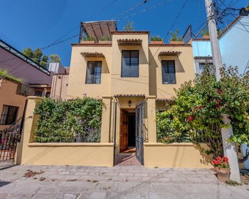 Located on the quiet street of Heradura in the highly desirable Guadiana neighborhood, this traditional Mexican home offers a comfortable blend of classic character and thoughtful updates. From the street, a gated entry opens to a small front garden that creates a pleasant buffer between the home and the sidewalk, with ample street parking available.Inside, a modest entryway leads to the living room, described best as soft colonial in style, featuring a fireplace with traditional tile work. A metal door opens directly to the front garden, bringing in natural light and reinforcing the connection between indoor and outdoor spaces. Continuing into the home, a dining area sits just off the traditional kitchen, which has been updated with modern appliances. The ground floor also includes a guest bathroom and a flexible bedroom that works well as a ground-floor primary suite, with views out to the home’s private central courtyard, accessible from both the bedroom and the living room. From the courtyard, an exterior staircase leads to the upper level.The second floor includes a full laundry room with newer washer and dryer, a water filtration system, and a second potential primary bedroom with a full en-suite bath. There is also an additional bonus room currently used as a reading lounge, featuring a window with mountain views and easily adaptable as a home office. This level opens onto a generously sized outdoor terrace, ideal for everyday outdoor living.An uncovered stairway leads to the rooftop terrace, which enjoys open views over the surrounding neighborhood, treetops, and the hills of San Miguel de Allende, along with peekaboo views of the Parroquia and Las Monjas.The location is a standout feature. The home is just around the corner from Guadiana Park and the popular Casita Feliz bakery, a short three-minute walk to Mercado Sano, and approximately a fifteen-minute walk to the Jardín, passing through some of San Miguel’s most pleasant streets along the way.