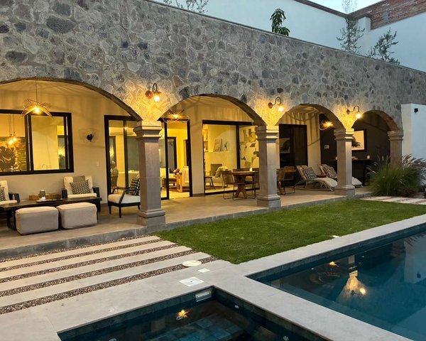 This enchanting, brilliantly light home is a masterful blend of contemporary features and decor with a sophisticated interpretation of colonial Mexican architecture. Old world touches can be founf everywhere, from the cantera floors and handmade cement tiles to cabinetry and furniture handcrafted from local rosa morada wood to a spectacular 60-foot covered porch with bespoke stone arches and columns.