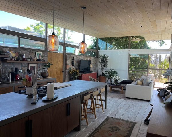 Welcome to your peaceful, modern country retreat—a warm and inviting 2-bedroom home designed to offer the perfect blend of comfort, style, and tranquility. Nestled in the heart of nature, this one-floor living space is ideal for those looking for a cozy, hassle-free home where modern amenities meet rustic charm.The home’s exterior features a harmonious balance of traditional and contemporary design. A simple yet elegant glass & metal facade blends seamlessly with natural wood accents, creating an earthy feel that complements the surrounding landscape. Large windows, framed with light iron, invite in plenty of natural light and offer sweeping views of the countryside. A spacious front porch, complete with an outdoor sitting area, provides the perfect spot to unwind at the end of the day while soaking in the surrounding views.Upon entering, you are welcomed by an open-concept living space, designed to create a sense of flow and connection between rooms. The heart of the home is the living room, where a comfortable sofa and armchairs are arranged, perfect for cozy nights. High, slatted wood ceilings add a sense of warmth, and openness, while warm wood floors bring an earthy, grounding element. Soft, neutral tones dominate the walls and décor, creating a calm and serene atmosphere.A spacious, modern kitchen seamlessly integrates with the living and dining areas, making it easy to entertain guests or enjoy family meals. The kitchen features sleek, state-of-the-art appliances including a farmhouse sink, stainless steel fridge, and a gas range. The countertops are made of durable, high-quality stone, and the cabinets are a blend of light wood, creating a contemporary yet rustic vibe. A central island with seating offers additional prep space and a casual dining option, while pendant lights above add warmth and style.The master bedroom offers a tranquil retreat at the end of the day. A king-sized bed with a luxurious, soft linen duvet and a mix of throw pillows sets the tone for comfort. Large windows invite views of the outdoors, and the room is bathed in natural light. A walk-in closet provides ample storage space, while a private, en-suite bathroom offers a spa-like experience. The design of the master bedroom is warm and soothing, with natural textures like wood and linen creating a serene atmosphere.The second bedroom is equally charming, with a queen-sized sofa-bed. This room can easily be transformed into a guest suite or a cozy space for a home office or hobby room; currently it is a painting studio. Neutral tones and simple furnishings provide a restful environment, while an additional closet offers extra storage.The retreat is surrounded by nature, with a spacious backyard that feels like an extension of the home. A large deck or patio area with a dining table, comfortable seating, and a fire pit creates an ideal space for entertaining or enjoying meals al fresco. Lush greenery surrounds the property, with paths leading to tranquil walking trails, perfect for morning walks or stargazing in the evening. This 2-bedroom, one-floor modern country retreat provides the ideal setting for relaxation and rejuvenation. With its thoughtfully designed interior, seamless connection to nature, and warm, inviting ambiance, it offers the perfect escape from the hustle and bustle of everyday life. Whether you're looking for a full-time residence, a weekend getaway, or a home to retire in, this charming home is ready to welcome you.