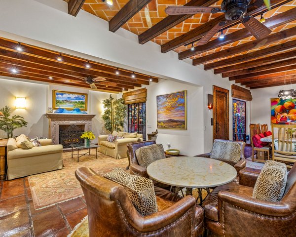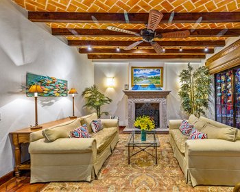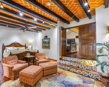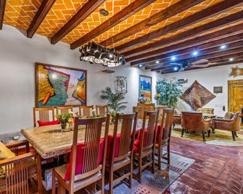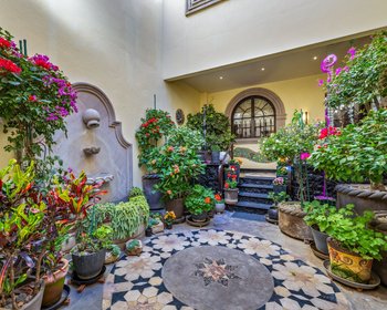 Located just two blocks from the vibrant Ancha de San Antonio, Casa Nueva Aventura is an extraordinary residence in the highly desirable Colonia Guadiana neighborhood. With rare dual street access from both Gorrion and Moras, this home offers unmatched convenience, privacy, and architectural distinction. Key Highlights 1. Spacious & Versatile Layout: Four floors connected by both a wide staircase and a comfortable three-person elevator. Multiple rooms can easily adapt to bedrooms, offices, or entertainment spaces—offering flexibility for any lifestyle. 2. Elegant Finishes: Beautiful artisan tilework, handcrafted cantera fireplaces (dual gas/electric), granite and onyx accents ,warm-wire heated floors, and high-end fixtures throughout. 3. Chef’s Kitchens: A large, fully appointed first-floor kitchen with luxury appliances, heated floors, and custom tilework; plus a third-floor entertainment kitchen with outdoor BBQ and patio dining space. 4. Exceptional Outdoor Living: Covered patios, a high-ceiling courtyard with fountain, and expansive rooftop terraces capture panoramic views of San Miguel de Allende, from Centro’s skyline to the surrounding hills. 5. Modern Comforts & Technology: Zoned electrical systems, CAT6 cabling, whole-house WiFi, motion sensors, and a comprehensive security system with video surveillance (front and back street view video). 6. Private Retreats: The principal suite includes three closet areas with floor to ceiling high end wooden closets, two spa-like bathrooms with large connected showers and sinks, heated floors, heated towel bars, and a spacious makeup and dressing area. Additional bedrooms are equally refined, each with en-suite baths. Additional Features Butler’s pantry, laundry with storage, and ample built-ins throughout. Extra refrigerator and freezer with storage areas between Butler’s pantry and garage. Rooftop entertainment spaces with covered patio, buffet wall, and breathtaking views.Enclosed garage. Dual hot water, water softener tank and quadruple stage water filtration system. Separate water storage area with available whole house reverse osmosis (RO) treatment. Electric controlled window blinds throughout the house, remote controlled celling fans. High end Toto toilets – two configured as Bidets. A Home of Craftsmanship & Comfort From the Talavera tile entryway to the panoramic rooftop vistas, Casa Nueva Aventura blends traditional San Miguel artistry with modern comforts. Whether you’re seeking a full-time residence or a luxury retreat, this property offers the best of both worlds in one of the city’s most prestigious neighborhoods.