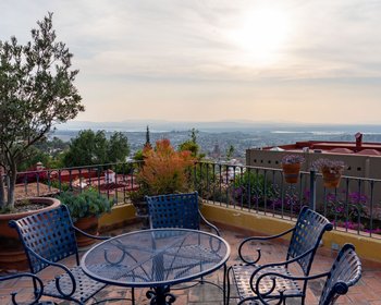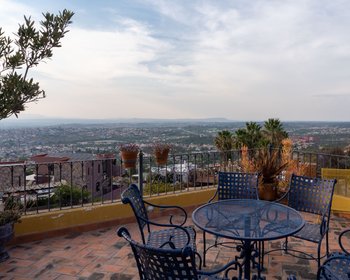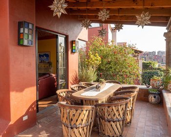 Casa Colina 15 is a beautifully maintained colonial residence located in the exclusive hillside enclave of Rinconada de Balcones, offering privacy, architectural charm, and some of the most extraordinary panoramic views in San Miguel de Allende. Set on a 410 m² lot with 365 m² of construction, the home has been thoughtfully updated while preserving its authentic character. Recent renovations include the kitchen and bathrooms, blending modern comfort with traditional craftsmanship and high-quality finishes throughout. Upon entering the home, you are welcomed by bright, open living spaces filled with natural light, where the living and dining areas flow seamlessly together. Architectural details such as the brick vaulted ceiling, terracotta floors, and a warm fireplace create a welcoming atmosphere that reflects the timeless elegance of San Miguel living. The recently remodeled kitchen features custom cabinetry, beautiful mesquite countertops, and excellent natural light, creating a space that is both functional and inviting for everyday living or entertaining. The home offers two spacious bedrooms, each with its own full bathroom and traditional kiva-style fireplaces, providing warmth and character. One of the bedroom terraces includes a cozy outdoor fireplace, an ideal spot to enjoy San Miguel’s cool evenings under the stars. In addition, the property includes a dedicated office/media room that could easily be converted into a third bedroom, as well as a convenient guest half bath, bringing the total to 2.5 bathrooms. One of the most remarkable aspects of Casa Colina 15 is its three terraces on different levels, each offering a unique perspective of the surrounding landscape. From these outdoor spaces you can enjoy sweeping views of the city, distant mountains, and the unforgettable sunsets that make San Miguel famous. The outdoor areas are beautifully landscaped with desert-inspired gardens, mature vegetation, and charming outdoor living spaces designed for relaxation and entertaining. The property also features a dry infrared sauna, adding a spa-like element to the home. Modern comforts include high-speed fiber optic internet, a state-of-the-art water filtration and purification system, and abundant storage throughout the home. Additional amenities include off-street parking for one car and an exceptional location in one of the city’s most desirable residential areas, just minutes from the historic center yet offering peace, privacy, and stunning elevated views. Casa Colina 15 represents a rare opportunity to enjoy spectacular views, timeless colonial design, and relaxed luxury living in San Miguel de Allende.