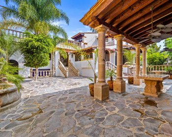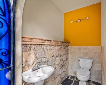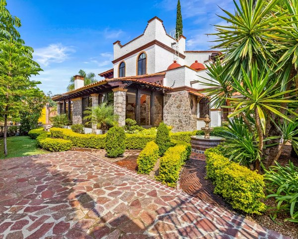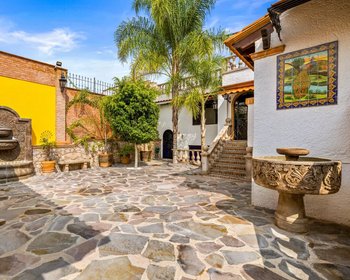A Mexican colonial-style home is for sale in the Villa de los Frailes subdivision, on Tabaqueros Street, located in the lower part of the neighborhood. The property sits on a 510 m² lot with 289 m² of construction. It is built with traditional materials such as cantera stone, clay tile floors, wrought iron, wooden ceilings with beams and tejamanil, as well as marble in the bathrooms and some stone walls. Upon entering, you’ll find a foyer with a vaulted ceiling, a half bathroom, and a living and dining room with glass doors that allow you to enjoy views of the garden. The kitchen is spacious, with wooden cabinetry, recently remodeled, and equipped with new appliances including a stove, refrigerator, oven, and electric oven. From the kitchen, there is access to the garden through a door, as well as to a small storage room. The house offers a semi-covered outdoor terrace with a grill area for family gatherings. The patio is covered with flagstone, which minimizes lawn maintenance, and is complemented with trees and plants. There is also a large laundry room, a half bathroom, and an additional small storage space. On the main floor, the master bedroom is spacious, with a full bathroom and direct access to the garden. There is also a second bedroom or study and another full bathroom. Upstairs, there are two additional bedrooms, a small office or study space with views, and another full bathroom. This property exudes warmth and authenticity with its colonial style. The sale price is $675,000 USD.