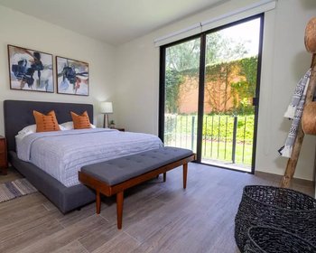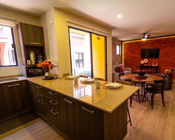 This ground floor apartment, with 115 m² of construction, offers a modern, functional design with large spaces ideal for a comfortable and practical life. Its location is strategic: it is very close to Bodega Aurrerá and, walking in a straight line towards the Historic Center, the journey takes approximately 25 minutes, depending on the walking pace. The property has 3 bedrooms and 3 full bathrooms, distributed to provide privacy and comfort. The integral kitchen is equipped with a granite countertop and breakfast bar, integrated into a pleasant living-dining room space that connects with a balcony, providing natural light and ventilation. In addition, it includes a linen closet, laundry area and garage for one car, making this apartment a very complete option. (The 50 m² roof garden corresponds only to the Penthouse type apartments.) A comfortable, accessible and very well located home, ideal for those looking to live on the ground floor with all the advantages of a contemporary design and excellent connectivity.