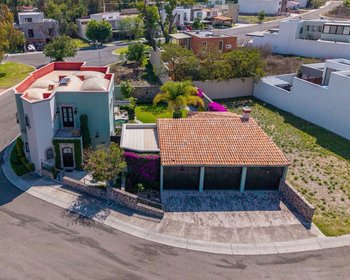 Villa Siqueiros – Corner Residence in Zirándaro Located in the Zirándaro community, on David Alfaro Siqueiros Circuit, this corner residence stands out for its spacious layout, privacy, and Mexican colonial style, creating a warm and inviting atmosphere. Upon arrival, the property features a covered garage with an electric gate and ample parking space. As you enter, you’ll find a generous, well-maintained garden complemented by a jacuzzi, perfect for relaxation. On the ground floor, the home offers a versatile space currently set up as a spa, complete with a full bathroom, which can easily function as an additional bedroom with independent access from the garden. Additionally, there is another independent bedroom with a kitchenette and full bathroom, ideal for guests or as a private suite. The main living area seamlessly integrates the living and dining spaces with excellent natural light, along with a spacious kitchen featuring a breakfast bar. There is also a laundry room equipped with a washer and dryer. On the second level, there are four bedrooms, each with its own full bathroom, providing comfort and privacy. The primary bedroom features a bathtub, perfect for relaxing moments. The property is sold unfurnished and is part of a community that offers security, a gated entrance, an on-site convenience store (Oxxo), and an upcoming commercial plaza, as well as a privileged golf course setting. With a monthly maintenance fee of approximately $500 MXN, Villa Siqueiros is ideal for those seeking a peaceful, secure lifestyle surrounded by nature, just minutes from San Miguel de Allende.