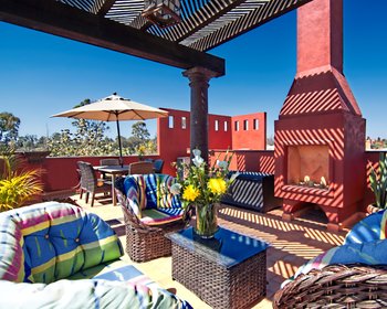 In addition to all of these wonderful indoor spaces, the rooftop garden provides yet another area for gracious living. The wood beamed arbor with cantera column accents creates a shady seating area, and the kitchen, complete with wood burning fireplace, grill, mini-fridge and sink, makes entertaining easy. Whether you're just lounging or enjoying a meal, you'll appreciate the expansive views of the hills and the mature greenery nearby.