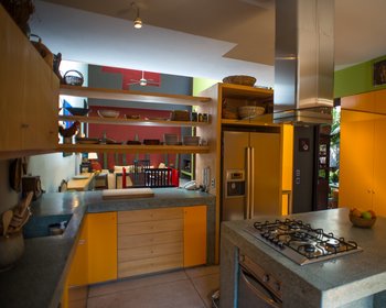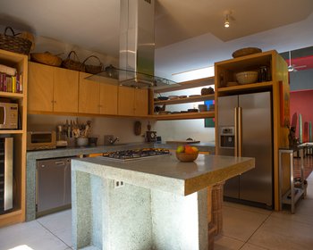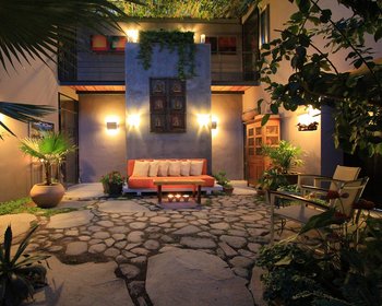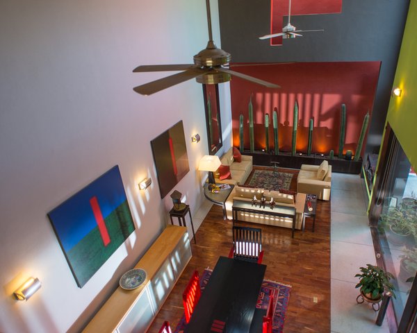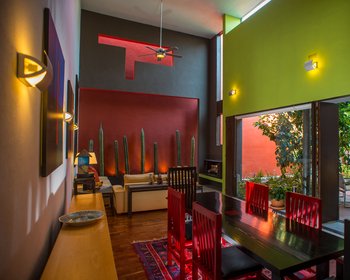 Drive down a quiet cobblestone road along the arroyo and an old hacienda stone wall and you will arrive in a small contemporary cluster neighborhood named Rincon de Santa Maria. Set back off of the road and surrounded with green spaces year round, it is only a flat 15 minute walk to the Jardin. The first and largest home created in Rincon de Santa Maria by renowned Mexico architect Luis Sanchez Renero, is for sale. This spacious, beautifully sun filled house surrounds an atrium that is partially covered with a glass and steel roof. There are high ceilings, skylights, many windows and imaginative spaces. The master bedroom and living area connects into a central atrium courtyard which gives this home a true indoor/outdoor feeling. This home is over 3100 square feet with 3 bedrooms and 3 and 1/2 baths. The kitchen has wonderful windows, seating area, great storage, preparation and cooking areas. Top of the line Bosch appliances remain. Whole house pressurized water and water purification system are only part of what makes this home unique. With two large rooftop gardens it makes a great area for entertaining, or just looking into the downtown fireworks. For a virtual tour of this property, please see the new video: https://vimeo.com/148245709