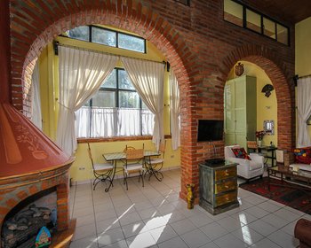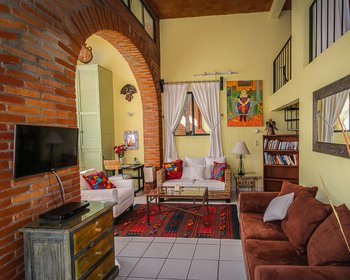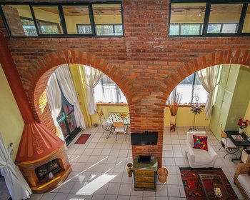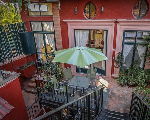 “Location” because it is in a quiet cul-de-sac of 5 condominiums in historic centro; a five minute flat walk to the very center of town. “Light” because the two-story wall of windows not only brings in natural light but also provides passive solar warmth to the unit.