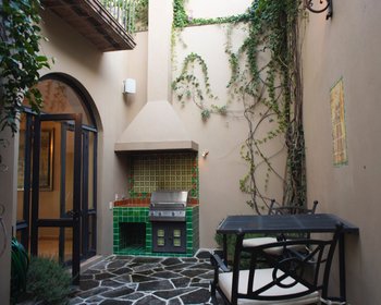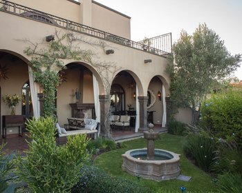 The house enjoys the finest of amenities and finishes. A main level bedroom, a gourmet cooks kitchen with all high end appliances which opens onto a separate al fresco dining area, garden area gas grill, a front lush garden w/cantera fountain & mature planting.