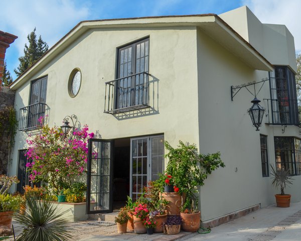 This lovely house is located in the heart of Atascadero, one of the best areas in San Miguel. It is part of a close community with only 3 houses, where you can feel privacy and security at the same time. The house has two bedrooms, the master bedroom has its own bathroom and walking closet, both bedrooms are upstairs and have Rennai heater; the living room, dining room, and kitchen are in the ground floor level, as well as the office and powder room. there is a gas fireplace in this area, and also cross ventilation. The courtyard is very ample and full of seats that invites to spend time outdoor enjoying the weather of San Miguel all the time. At the roof terrace you can relax with the views to Centro, to the hills and the lake, and in the other direction a view that gives a feeling of an italian town. The price is $2050 usd which includes all utilities, and maid once a week. Pets are welcome (dogs or a male cat).