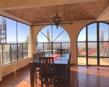Casa Luz is a completely funished home in a great neighborhood. This house is for a complete family including pets. It has 4 bedrooms, 4.5 bathrooms; living room, dining room, and two terraces with a marvelous view to town, the kitchen is ample and fully equiped, TV room, patio with fountain and more. The price does not include utilities, cleaning and gardening are included twice a week. It has purified water and alarm system. There is a gas fireplace in the living room, and gas/electric heaters for the rest of the house. Your dog is welcome, no cats. Price is $2800 usd for one year lease.