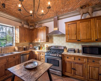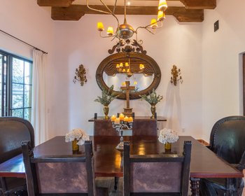 Located in the Villa section of the Premier gated community of Candelaria, just a 5 minute drive from charming San Miguel de Allende, this exquisitely built one-level home offers a great life style, private, tranquil and surrounded by the natural beauty of the area. The elegantly furnished house has tall ceiling with wooden beams and doors that open up to a covered loggia off the dining and living room which overlooks a beautifully landscaped fenced in garden. The home has 2 bedrooms with their own en-suite bathrooms, plus an additional studio. 5 fireplaces in total: 4 gas and one wood burning. Furthermore, there is a guest bathroom, laundry center with service bathroom, 2 car garage and storage room.