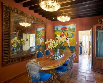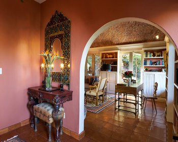 This is where one finds Casa Baeza, a beautiful home that combines old world elegance with contemporary comfort. Lush landscaping surrounds this amazing house with its indoor/outdoor salas, fountains, a heated pool (complete with a cozy fireplace-warmed sitting area), private terraces and meandering stone and tile paths. Inside, the traditional-style kitchen is outfitted with everything a more modern kitchen needs.
