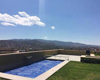 There is a fully equipped open concept kitchen with marble finishes and wood cabinetry. The entrance, garden, terrace, two of the bedrooms, laundry room and a powder room are located on the first level. The second level offers another entrance with access to two master bedrooms and children’s bedroom.