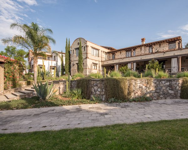 This home of stone construction 12” thick & crafted adobe accents is set inside a Bougainvillea covered Wall protecting lovely mature landscaped gardens. The home enjoys covered wide Loggias on each side supported by carved Cantera columns & furnished for San Miguel’s al fresco living. Both Loggias also have the luxury of a wood burning Fireplace. The back garden is an orchard of fruit trees , flowering trees , plants & protected by perimeter European Cypresses. A large shallow pool enticing in this setting is designed for comfort & soaking relaxation & is the focal point in this wonderful Garden.