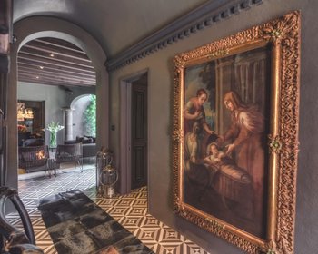 No detail overlooked, Casa Ramona incorporates an exquisite selection of local and imported fabrics and furnishings, many custom designed for the space, and a carefully curated selection of antiques and fine art to create an intimate ambiance for the most discerning eye. This residence also features Smart technology including a Sonos sound system, alarm with remote viewing and keyless entry. Four ensuite bedrooms insure the utmost in comfort and privacy with their high thread count monogrammed linens, fireplaces, A/C & heating splits, expresso bars and ipads. The pool area transports you to another exotic place, with it's lush vegetation, lion head spouts and monogramed towels, reminiscent of an afternoon spent lounging at a 5 star hotel. A 150 year old Olive tree, dramatically up-lit in it's own fountain setting, welcomes you to the outdoor loggia, one of two found in the home that can be shielded by Sunbrella drapery on that rare chilly afternoon. A rooftop terrace allows you to relax in San Miguel de Allende's world famous climate amidst the surrounding neighboring homes and take in the breathtaking views of the church domes. A private tower with a custom cloud like daybed makes enjoying this residence truly a dream come true! A treasure worthy of being featured in "World of Interiors" magazine for it's unique unprecedented drama and style, this is one of the finest residences being offered in San Miguel de Allende today.
