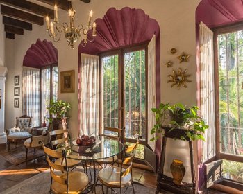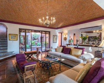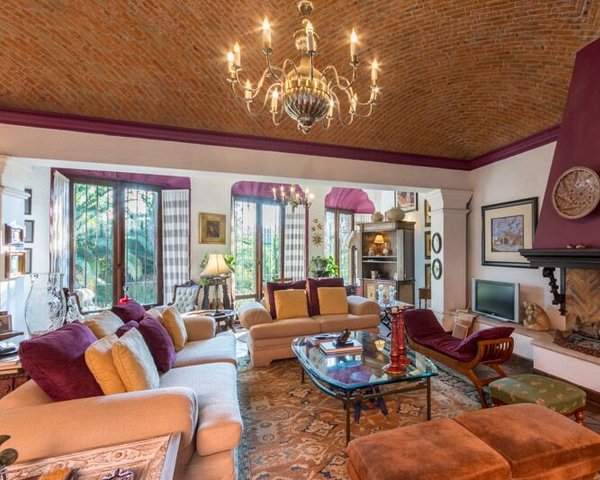 Without a doubt, this house in front of Parque Juarez is located in one of the best areas of San Miguel de Allende! At just a 7-minute walk to La Parroquia and the Jardin, the town´s main square. This home has three beautifully decorated bedrooms, with large bathrooms. Each with its own fireplace or heating source. You enter the house through a spacious foyer, which could be converted into a garage. The first bedroom is located on this level. Behind the foyer is a large space which could easily be turned into an additional 4th bedroom, since there is also a full bathroom next to it. This bottom level also boasts a large room in back, utilized at the moment for storage, but at one time was a recreation room. Heading up towards the second level, one arrives into the Boveda mantled living room, with its large Cantera fireplace and cozy alcoves that face the Parque Juarez. From the living room you can exit to the courtyard, with its traditional Mexican fountain and flanked all over with indigenous plants. To the other side of it is the dinning room and kitchen, as well as the powder room and second bedroom. This bedroom has a loft area which fit 2 twin size beds. The third and last floor boasts the master bedroom, with its own sitting room, larger bathroom and independent access to the charming terrace with lounge chairs, jacuzzi and bar, overlooking the lush park. From its stone façade and wrought iron covered windows, to its Cantera details and traditional Mexican hand-painted tiles, this house has the “old-world charm” that makes people fall in love with the city...