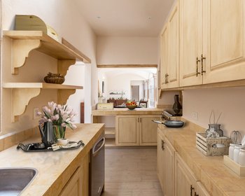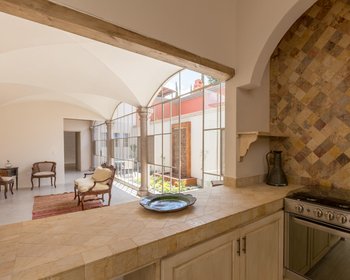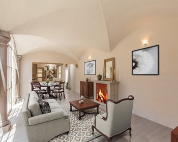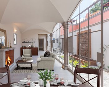 This two story house has an open plan on the ground floor with cantera columns and roofs with crossed arches. The master bedrrom on the first level with two dressing rooms, has a light-filled view of a private garden. The living-dining area opens to a spacious gourmet kitchen. there`s also an office/second living area right next to the stairs; this area opens to a big patio filled with plants and a cantera wall-fountain with its pond. The desing makes it the perfect place for social meetings.