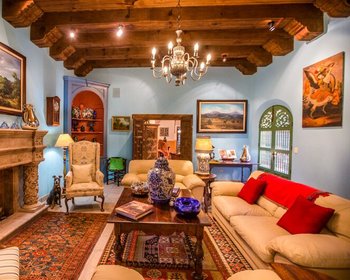 This residence is distinguished by its array of unique, spacious open-plan living areas, exceptional craftsmanship and fine materials. Extensive relaxing outdoor entertainment space surrounds the home and complements the pool, game area and movie theater. This private property is located in the picturesque neighborhood and exclusive community known as Villas del Parque with its shady tree-lined streets in a preferred location close to all of the city`s attractions and next to Juarez Park. This beautiful estate offers gracious living in sought-after Centro location. Complete with garage and casita.