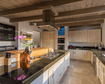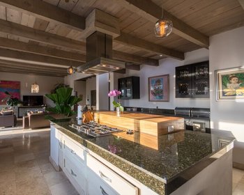 The property has four spacious bedrooms–one of them with the potential of being a casita, four bathrooms, a fully equipped gourmet kitchen which is perfect for socializing and hosting your gatherings. In this modern kitchen, while preparing delicious dishes you can use the built-in island as extra counter space or a snack bar with seating.