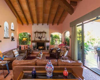 Located off a grand-entrance circular driveway on a street named for iconic artist Friday Kahlo, this home proves an equally creative nod to Mexican Colonia style—including boveda ceilings, wood beams and stone details—but offers an open American-style great-room plan perfect for family gatherings or entertaining.