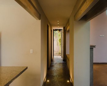 2 bedrooms, 2.5 bathrooms, living and dining area with double high ceiling and cantera fireplace,cantera floors in all the house,open kitchen,small backyard and front patio that could be parking area for two cars.