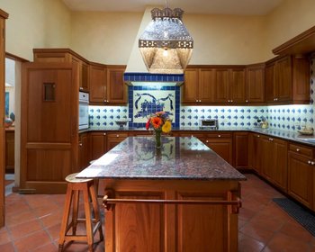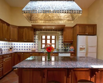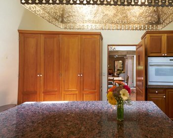 The large kitchen, overlooking Calle Aldama, has granite counter tops, a large island and extensive storage space. All the rooms on this floor have architectural skylights that bring in the natural light. There are fireplaces in both the indoor and outdoor living rooms.