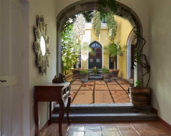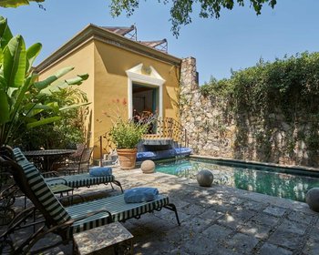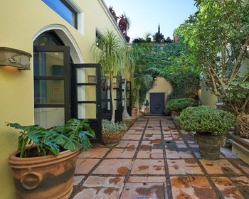 Beyond the first courtyard, there is an intimate patio, which leads to the hidden garden with swimming pool reminiscent of an ancient Roman Villa. This space is a true oasis in the middle of historic downtown.