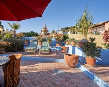 The rooftop terrace features spectacular views of the Parroquia. Residents have a front row seat to San Miguel’s legendary sunsets, holiday firework displays and traditional wedding parades that dance down Calle Aldama.