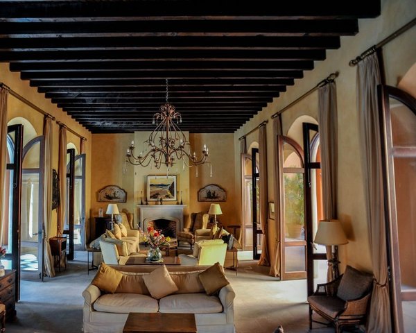 It has wide spaces in the living room and rooms with natural lighting, a bedroom on the ground floor, a fireplace in each of the 5 bedrooms, beautiful patios with their characteristic colonial portals, quarry columns, beautiful ponds, waldras ceilings, large windows , beautiful gardens with characteristic vegetation of the area such as cacti and large Mezquites, large garages with independent automatic entrances and high and solid walls that provide a very pleasant temperature.