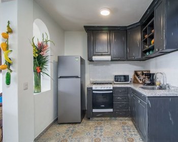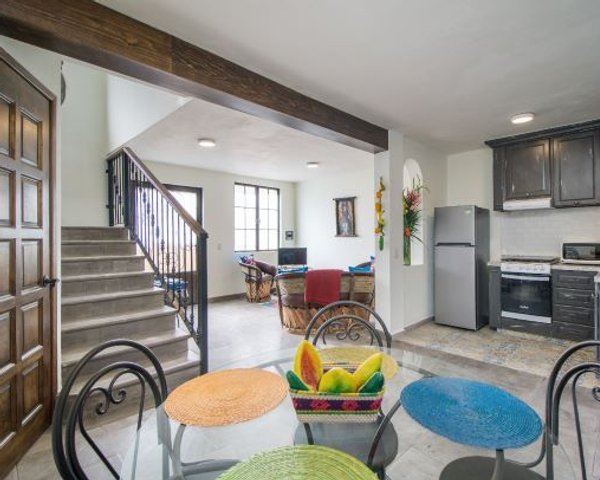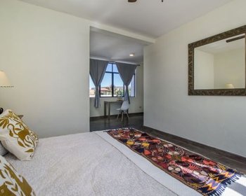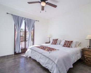 Casa Roja is a charming, contemporary Colonial home with abundant light and stunning views of the Parroquia and the San Antonio cathedral. Traditional features of wrought iron railings, cantera finishes, and wooden beams are handsomely married with contemporary granite, bathroom fixtures and modern tilework. The open concept first floor allows ample space for family gatherings in the living room, dining area and kitchen; a half bath completes the ground floor. A small atrium with a cantera tree-of-life fountain casts additional filtered light into the living space of the first floor.