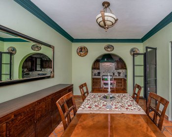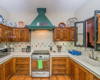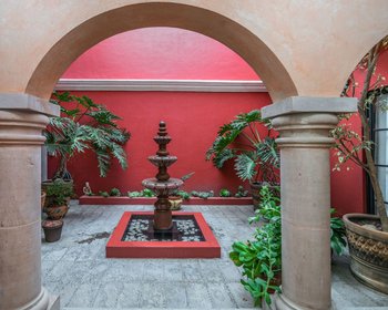 Second level has a lite and bright studio area connected to a rooftop terrace which has peaceful mountain views. This area overlooks the flower filled center courtyard and fountain. Two bedrooms with boveda ceilings, ensuite bathrooms with double sinks complete this level.